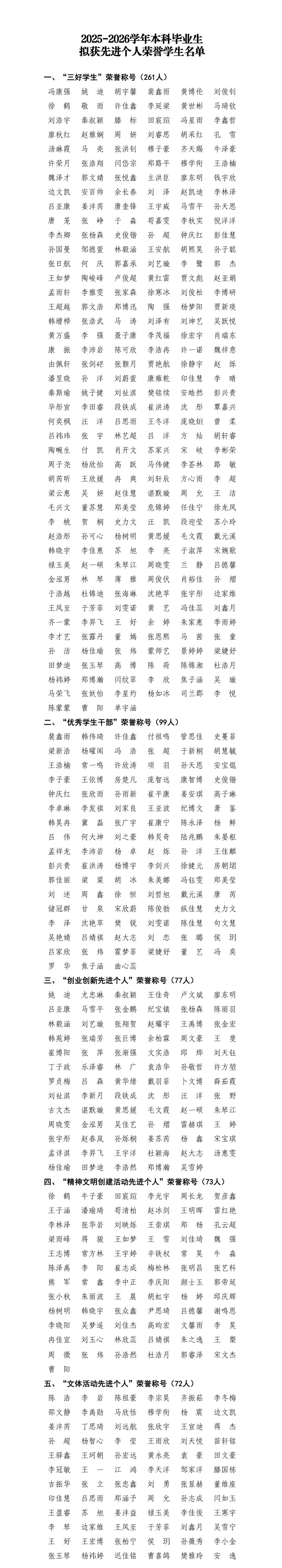 根据《黑龙江科技大学本科生奖助学金评审管理办法》《黑龙江科技大学本科学生先进个人和先进集体评选办法》有关规定,经过学生申请、班级推荐、学院评选、学校复审等程序,拟确定冯康强等619名学生为学业奖学金获奖人选,拟确定田宸瑄等582名学生为先进个人获评人选,具体名单见附件,现将评审结果予以公示。